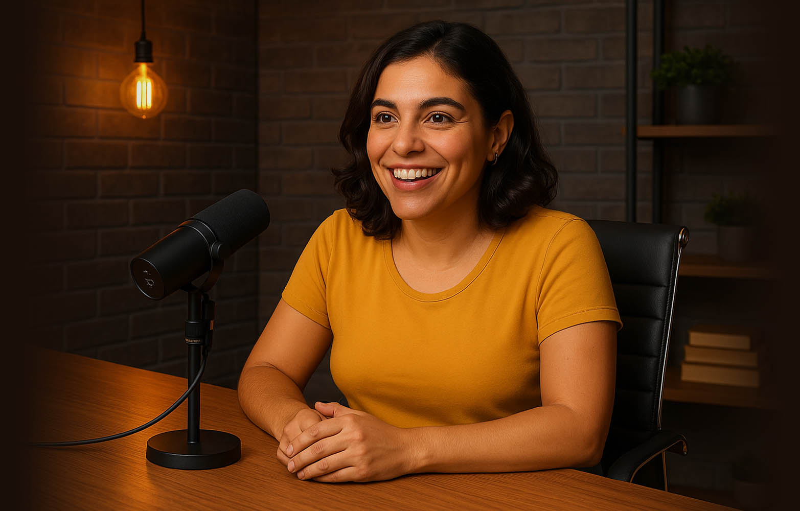 5 Câmeras Blackmagic 6k suspensas, Iluminação Amaran, microfones Shure SM7b, fones AKG, cortinas coloridas por led RGB, sala acústica e mobiliário.